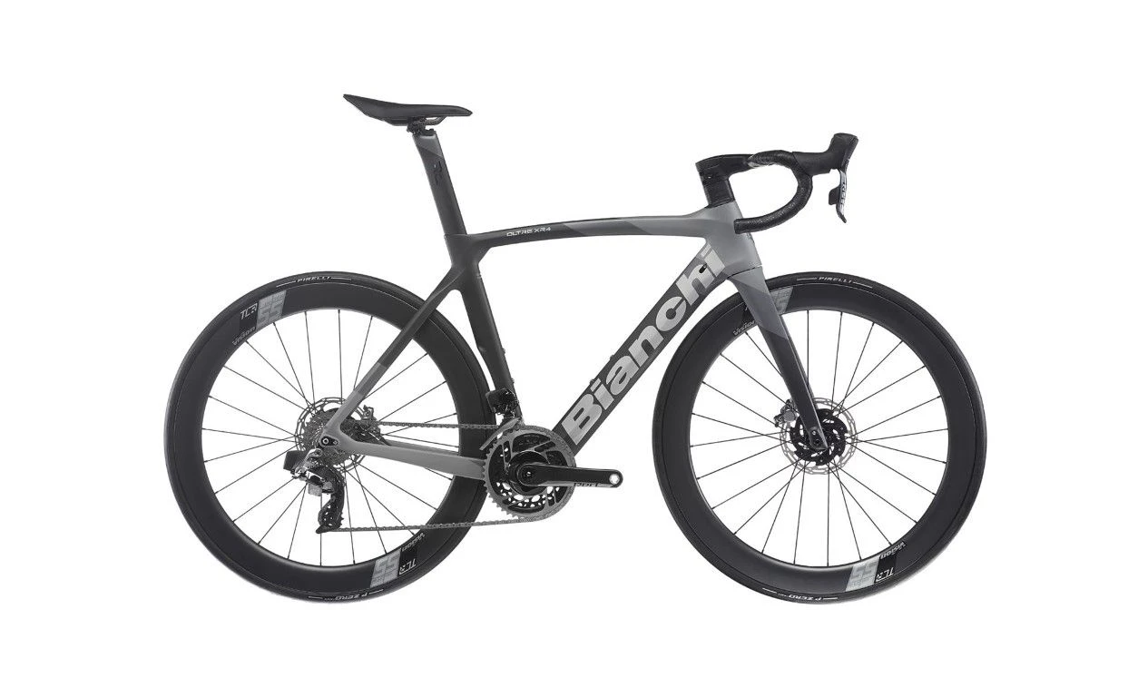 - Frame: Oltre XR4 carbon w/Bianchi CV, mechanical/electronic shifting compatible, headset 1.5″, PressFit 86,5x41mm BB, Disc brake internal cable routing, flat mount caliper, thru axle 12x142mm, sizes 47-50-53-55-57-59-61cm