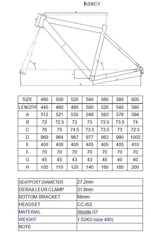 Slechts 1100 gram weegt dit frame zonder vork. Uitzonderlijk goede stijfheidswaarden worden verkregen door de speciale legering.
