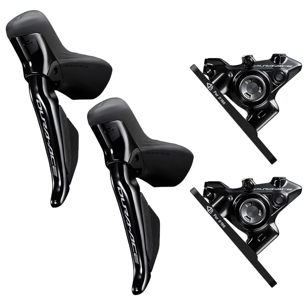Wordt geleverd als (voorgemonteerde) set voor & achter hydraulische Di2 2×11 speed Dura Ace 12sp shifters en remklauwen excl. remschijven.