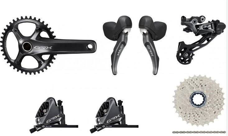 Shimano RX-810 1×11 shifterset met remklauwen, maar zonder rotors (voorgemonteerd 1000 en 1700mm hydraulische kabel)