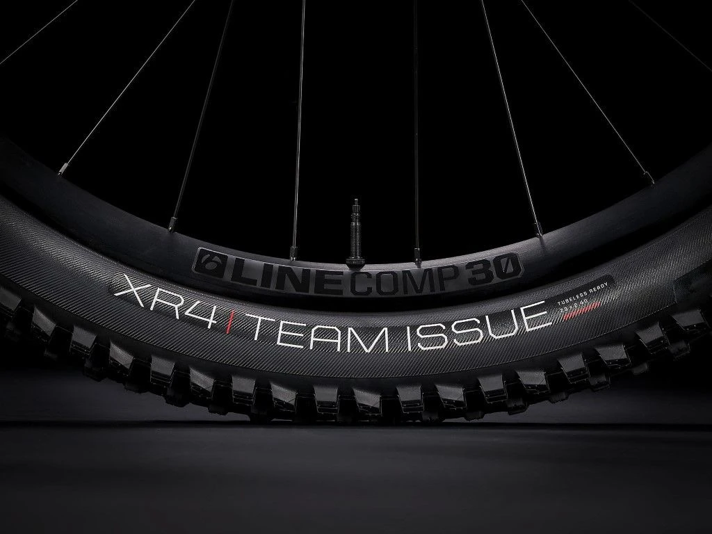 - Buitenband: Bontrager XR4 Team Issue, Tubeless Ready, Inner Strength zijwanden, aramide hieldraad, 120 tpi, 29 x 2.40”